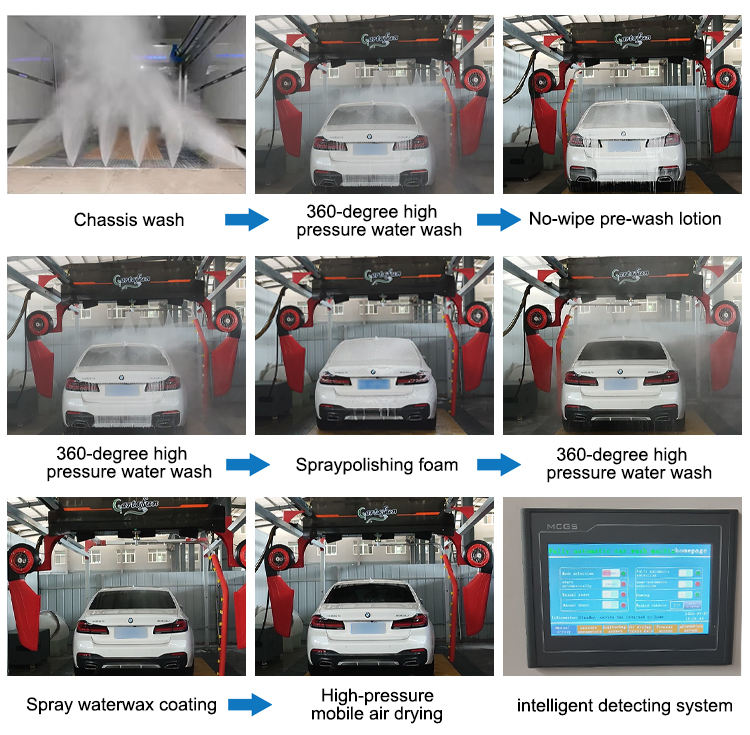 Station de lavage de voitures entièrement automatique sans contact avec système de lavage par portique pour véhicules