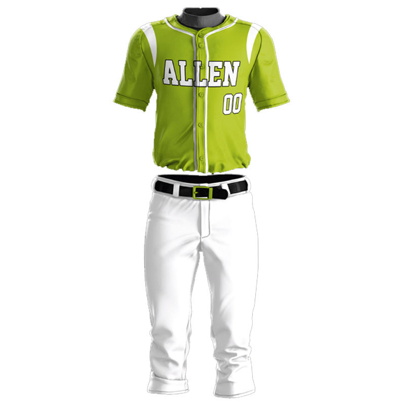 Tenue d'équipe entièrement personnalisée, uniforme de baseball avec tissu en spandex/coton, style 3 boutons, col roulé antibactérien, pantalon à cordon de serrage