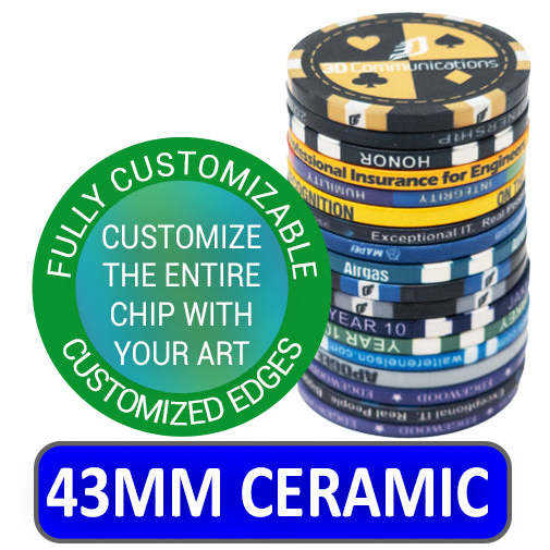 Jetons de poker en céramique entièrement personnalisables de 43mm et 1.7 pouces avec bords personnalisés