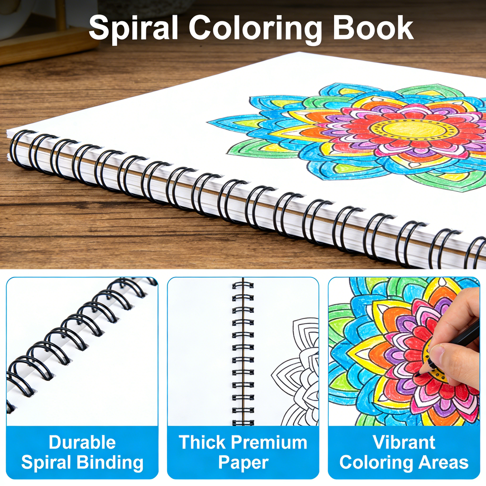 Carnet de coloriage entièrement personnalisable, spirale, design personnalisé de qualité supérieure, fournitures scolaires pour enfants et adultes, cadeau anti-stress