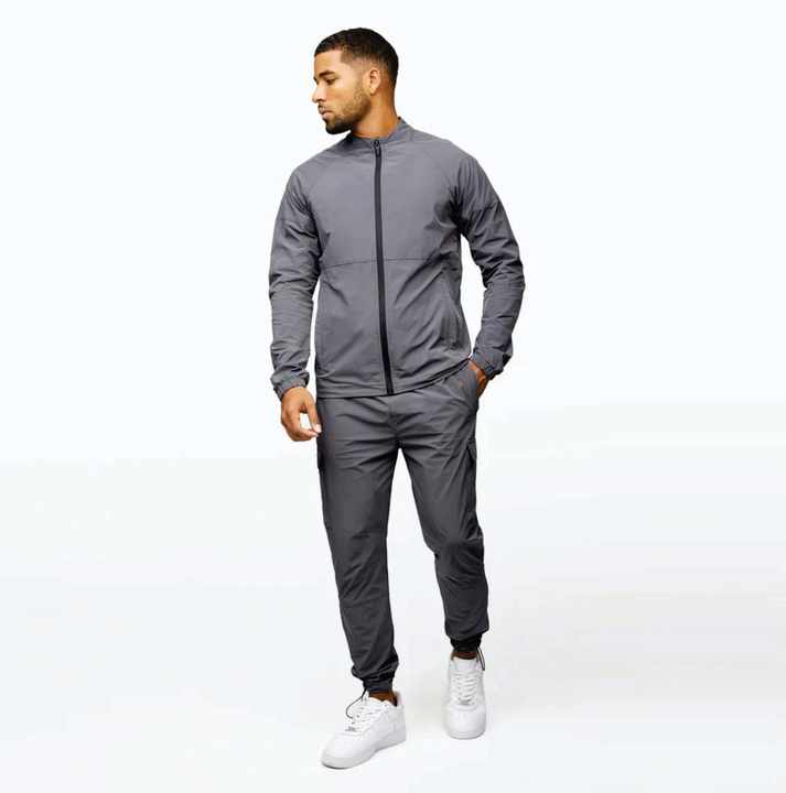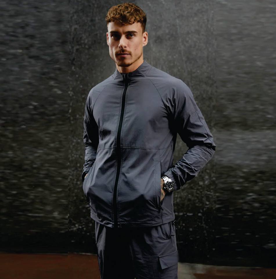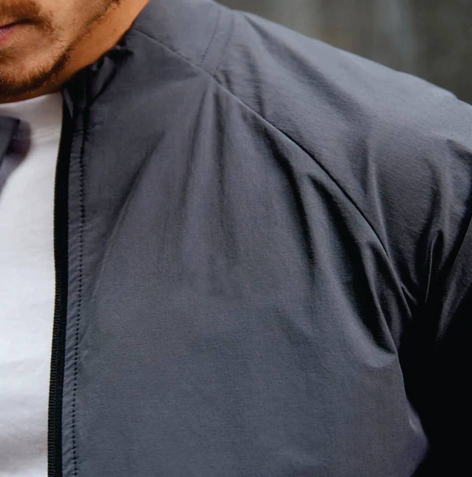 Bomber tissé utilitaire entièrement personnalisé 85% polyamide 15% élasthanne graphite aux poignets à fermeture éclair pour hommes