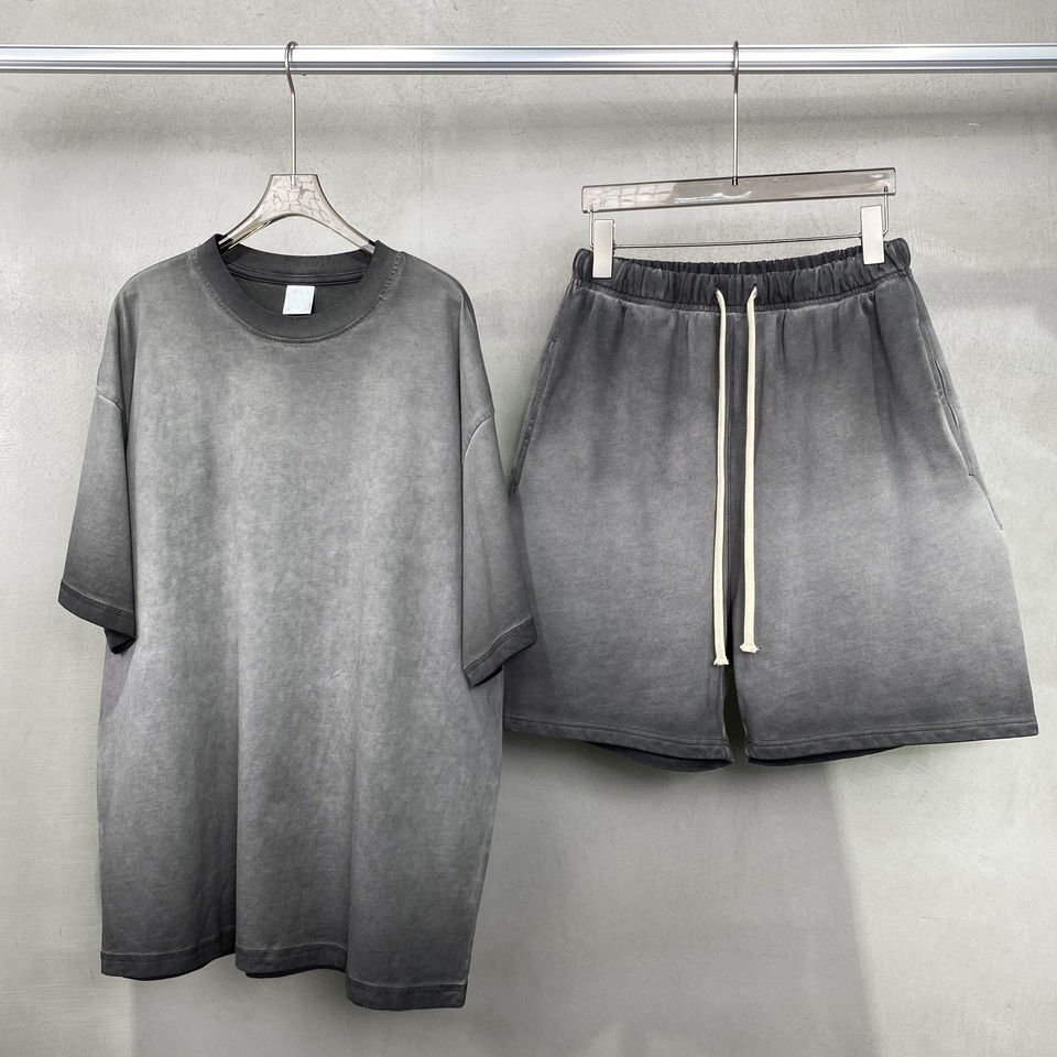 Ensemble T-shirt et short surdimensionné délavé au soleil, entièrement personnalisé, style streetwear, coupe ample, effet délavé à l'acide, pour unisexe