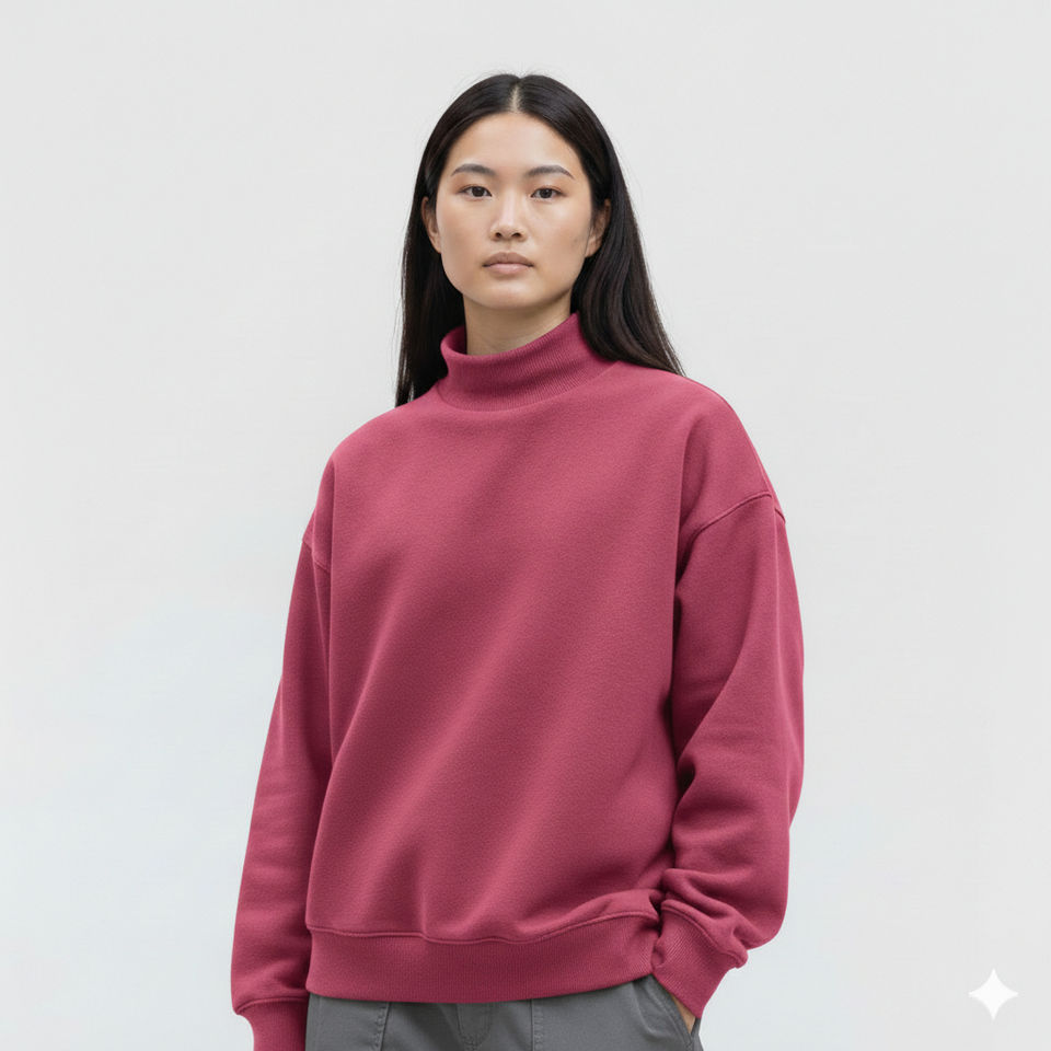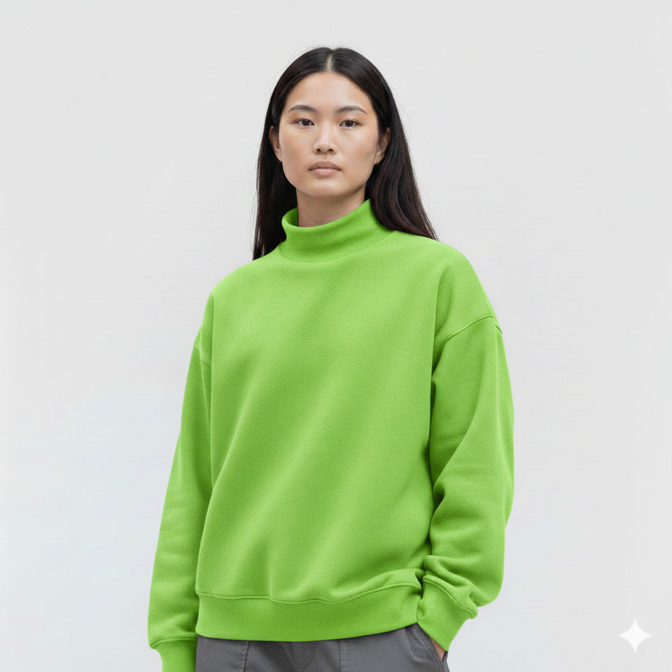 Pull d'hiver entièrement personnalisé à motif uni, col montant, manches longues, en polyester/coton écologique, anti-plis et respirant