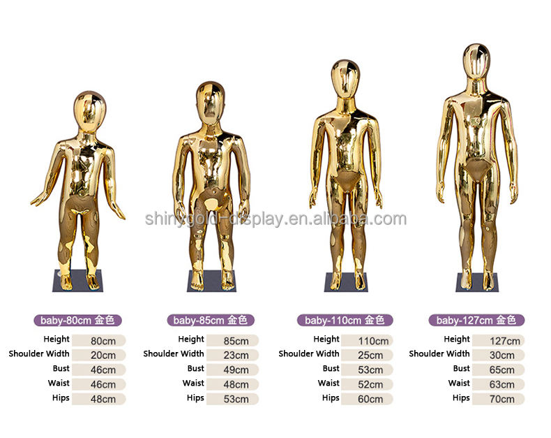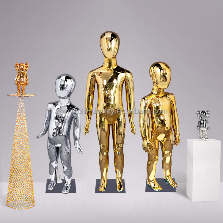 Mannequin de poupée en plastique entièrement plaqué or, modèle pour enfants, présentoir pour vitrine de magasin de vêtements
