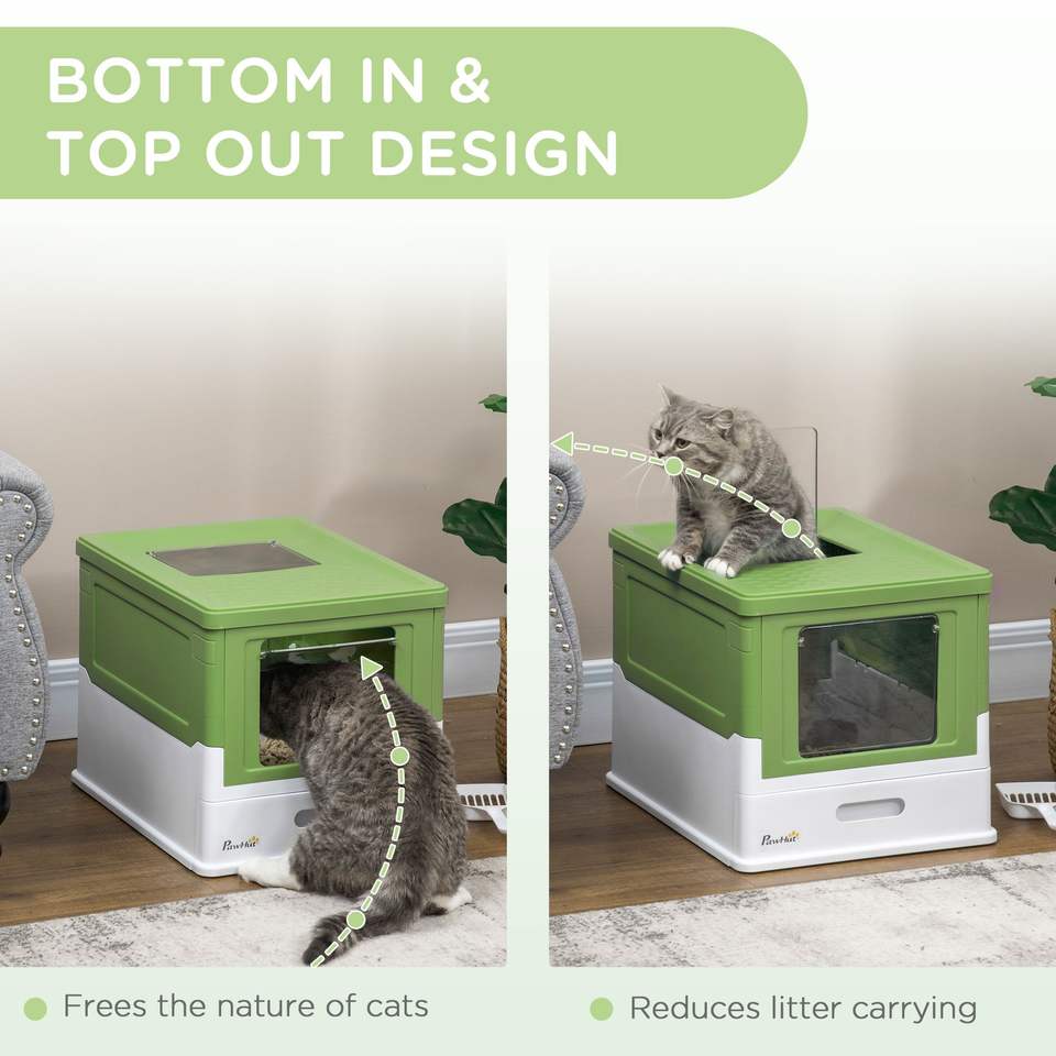 Bac à litière pour chat entièrement fermé avec entrée avant et sortie supérieure, couleur vert jaunâtre