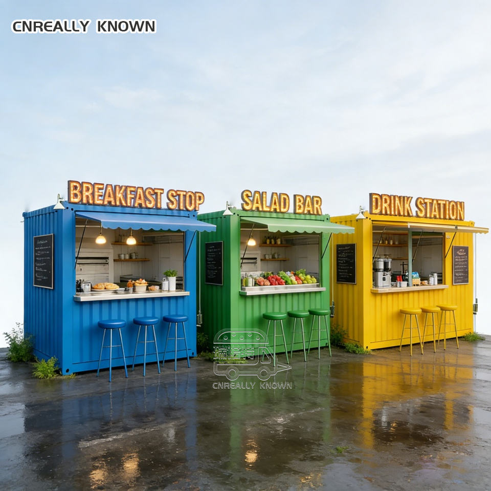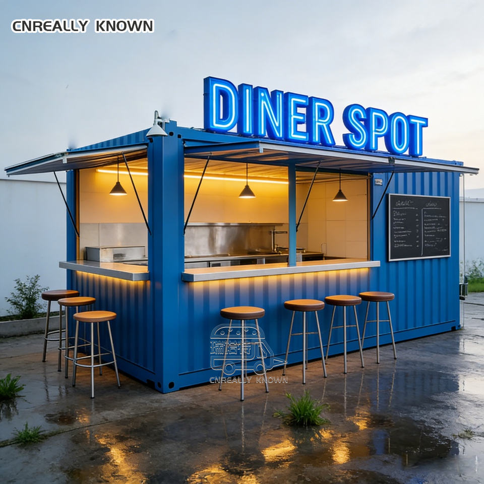 Cafétéria en conteneur entièrement équipée, système de levage à charnières, isolation artificielle, conception personnalisée