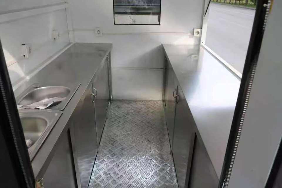 Équipement de restauration entièrement équipé en acier inoxydable à 4 roues pour les camions et chariots mobiles de pizza, de barbecue et de crème glacée