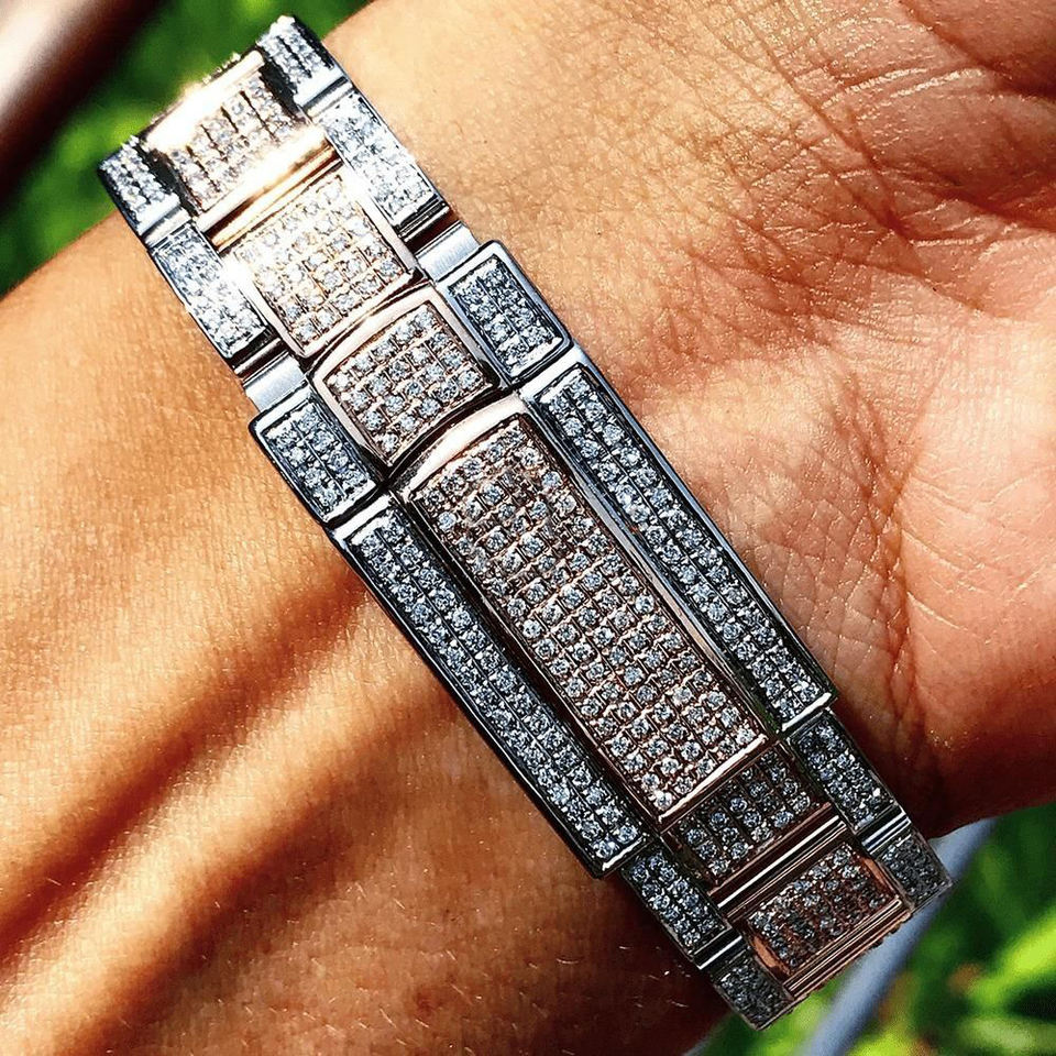 Fully Iced Out Brown Dial Tone Dial VVS Diamond Wrist Watch / Diamond Watch Unisex Hip Hop Iced Out Diamond Watch