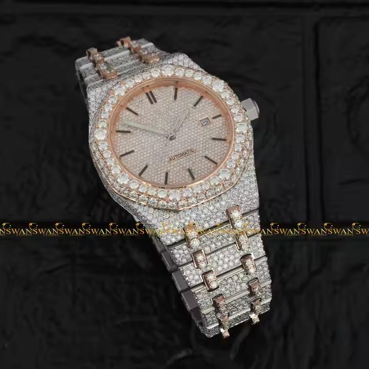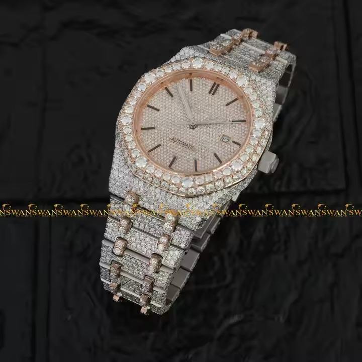 Montre analogique stylée pour hommes en acier inoxydable Sport Charm Luxury Entièrement Iced Design Custom Hip Hop Bling VVS Clarity Cut Moissanite