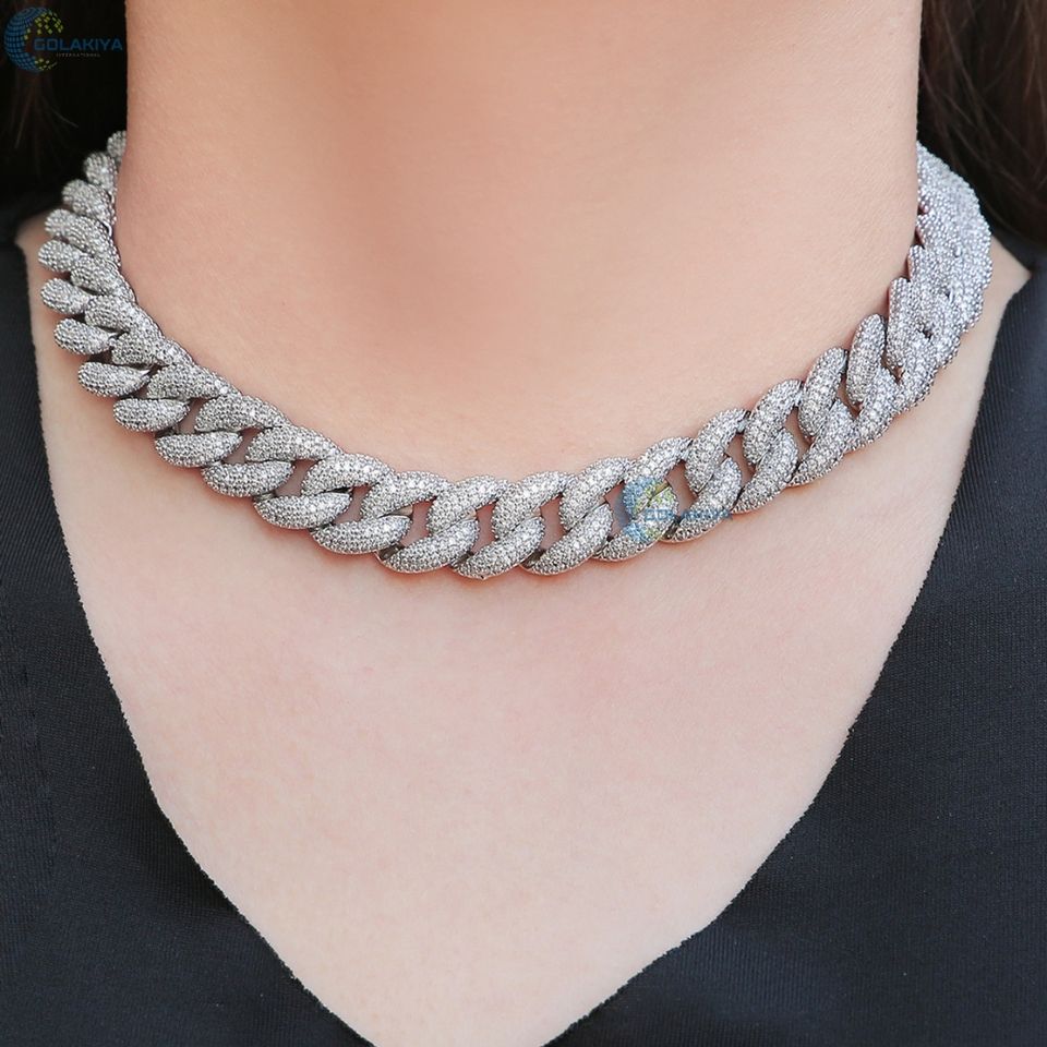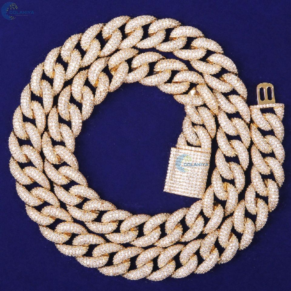 Chaîne à Maillons Cubains Moissanite Style Rappeur Hip Hop Bling Collier Avec Serrure De Boîte Pour Hommes