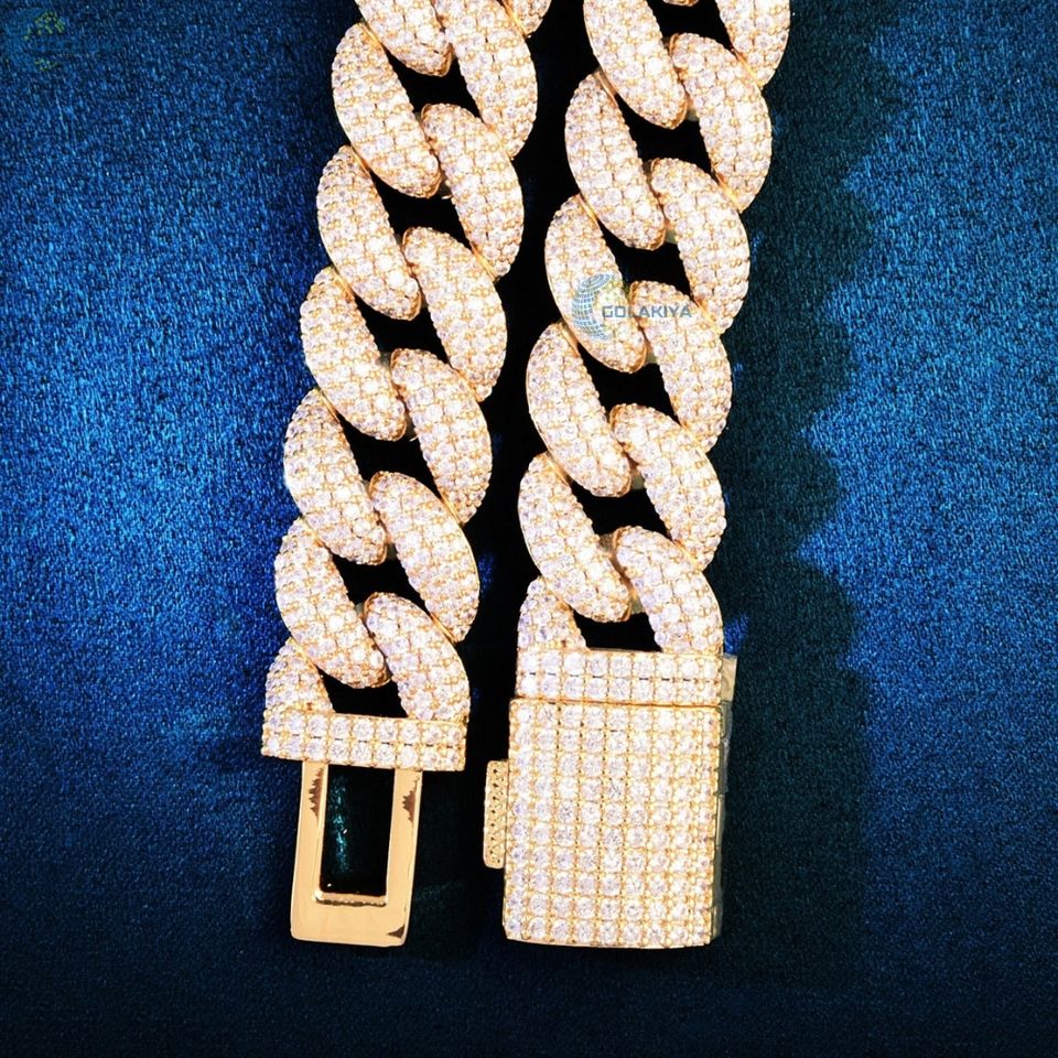 Fully Iced Out Moissanite Cuban Link Chain VVS Round Cut Hip Hop Bling Necklace with Box Clasp For Men