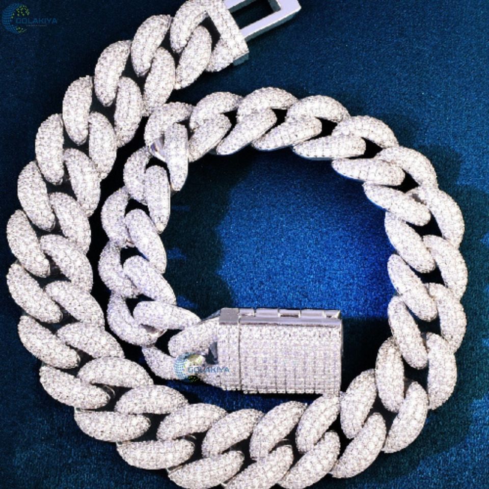 Chaîne à maillons cubains Moissanite entièrement glacée Collier Hip Hop Bling à coupe ronde VVS avec fermoir à boîte pour hommes