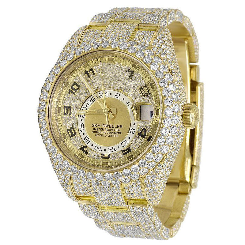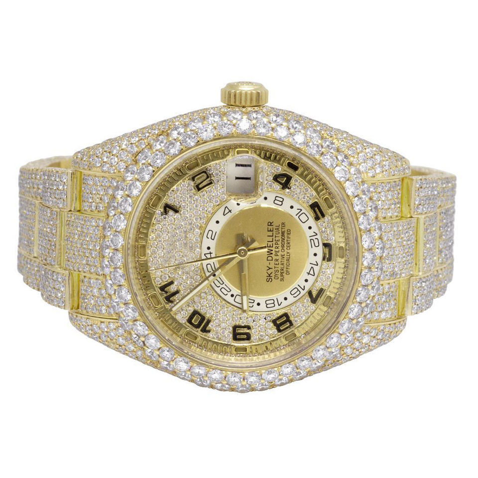 Montre-bracelet en diamant VVS à cadran jaune entièrement glacé/avec cadran de date-Bling de qualité supérieure pour les créateurs de tendances