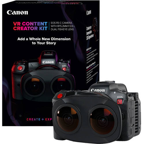 Kit de création Canonn EOSs R5 C VR entièrement stocké avec objectif RF 5.2mm F/2.8 double Fisheye