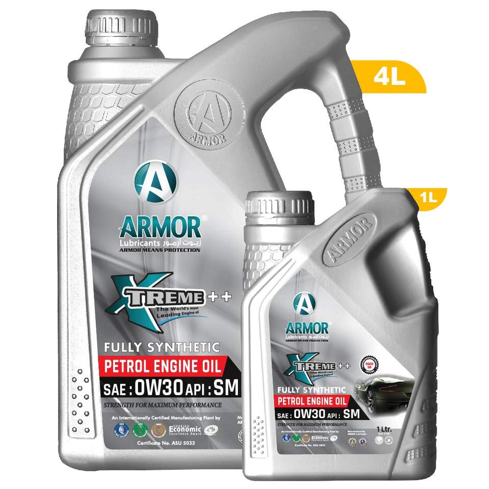 Huile moteur entièrement synthétique pour essence Armor Xtreme++ Technologie allemande 0W30 SM Performance extrême Fabriquée aux Émirats arabes unis