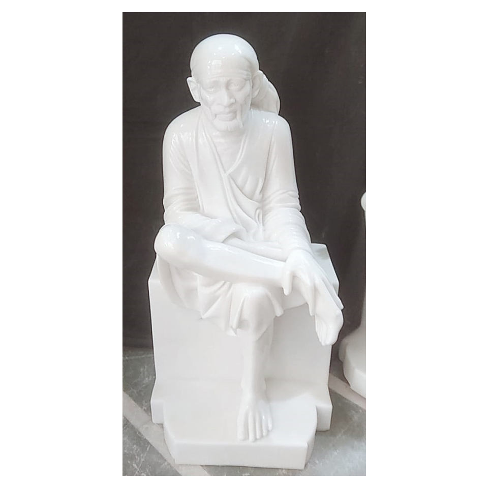 Product Name:Fully White Marble Fully White Sai Baba God Statue Sitting On Throne
