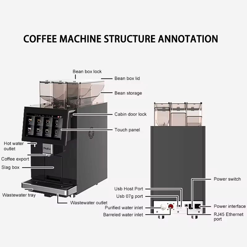Machine à café commerciale entièrement automatique robinet grain d'eau à tasse cafetière expresso pour hôtel