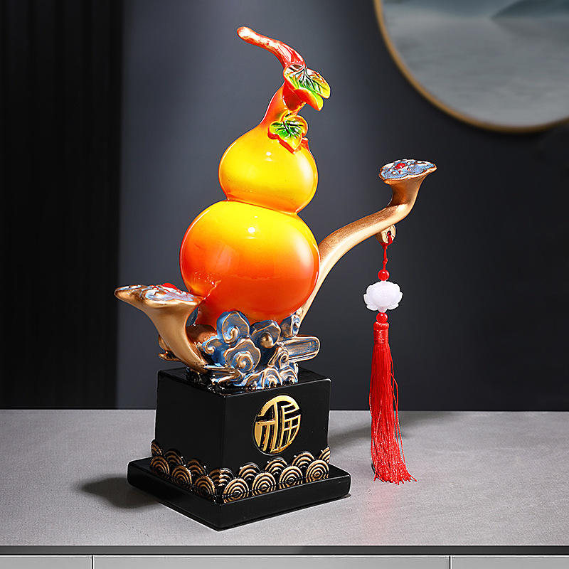 Fulu Shuangquan Creative Epoxy Resin Sculpted Gourd Ornament Chinese Living Room Decoration Entrance Gift Housewarming New Home