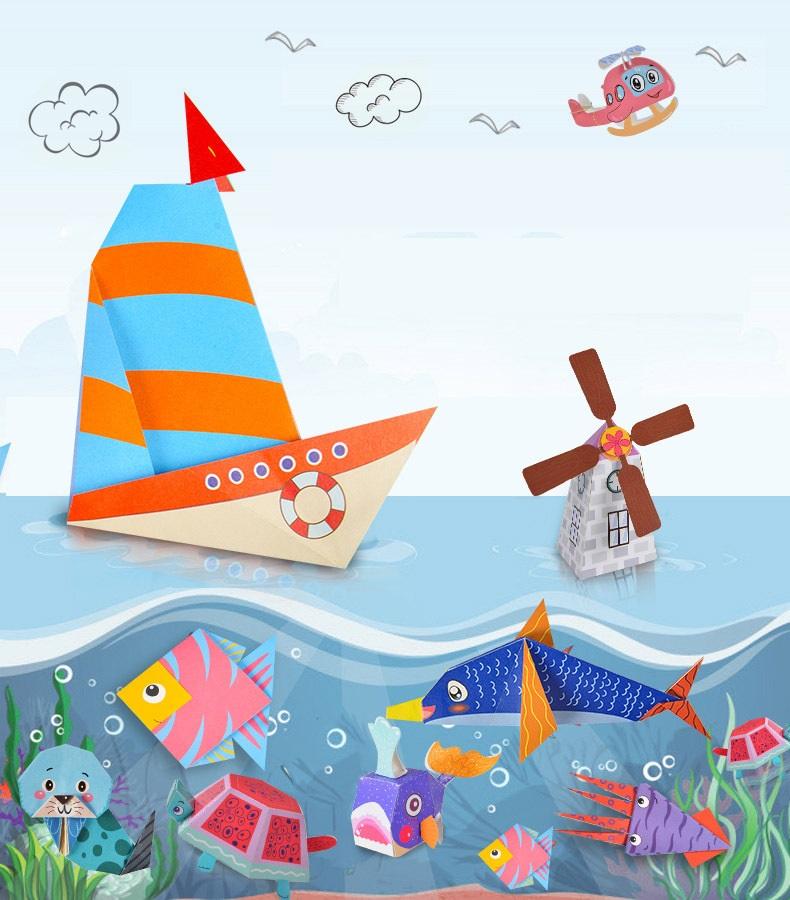 Fun Baby Puzzle Origami Folded Paper Cut DIY Children Handmade Paper Crafts Set Origami Toys