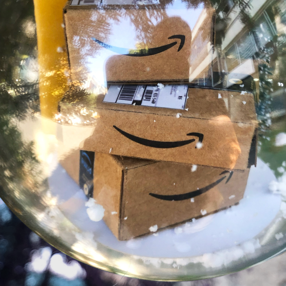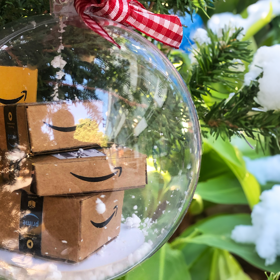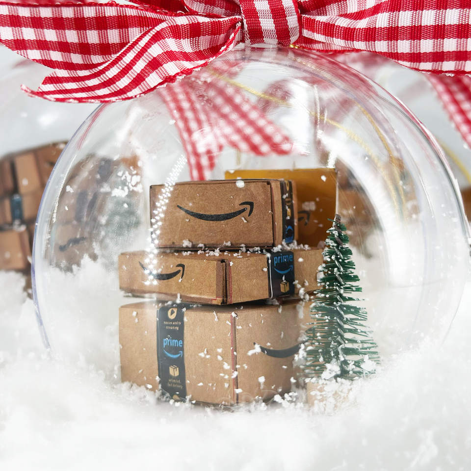Fun Christmas Snow Globe with Mini Shipping Lover Boxes Festive Holiday Scene Christmas Ball & Tree Ornaments
