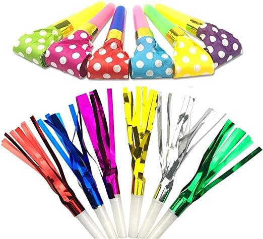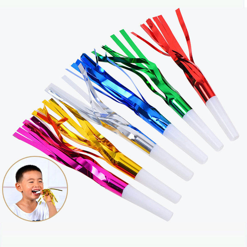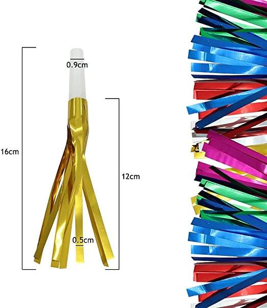 Amusant coloré anniversaire 2025 nouvel an fête fournitures faveurs souffleur soufflage métallisé couleur feuille glands frange clinquant trompette