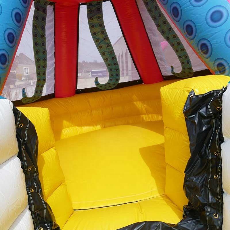 Château gonflable mobile rose et jaune en forme de pieuvre avec toboggan, jeu multijoueur, nouveau design, jeux gonflables dynamiques