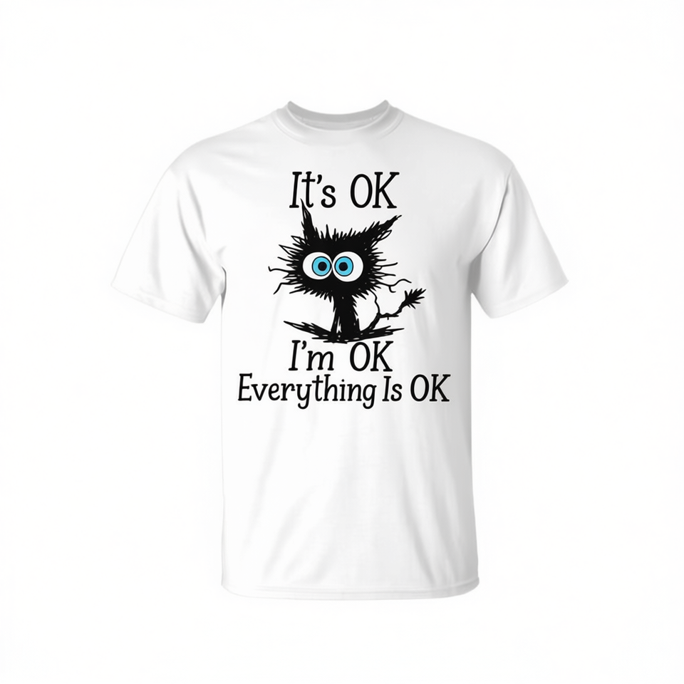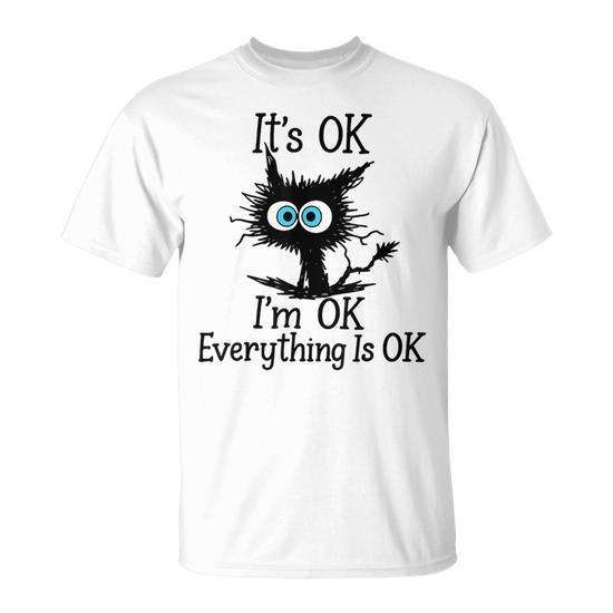 T-shirt avec citation de chat noir sarcastique : Fun, c'est ok, je suis bien, tout va bien