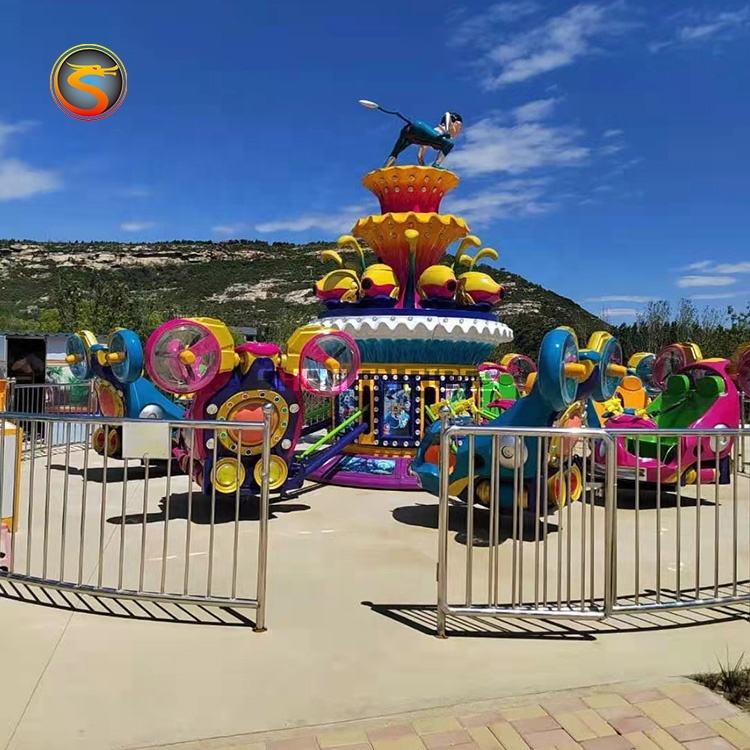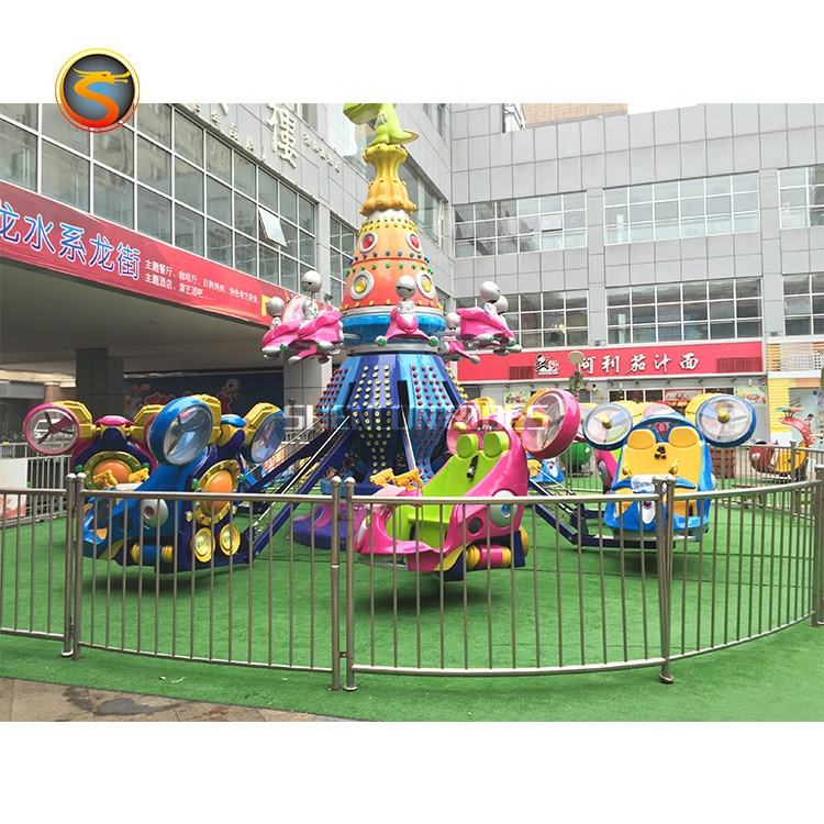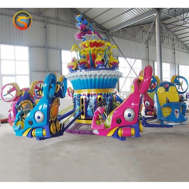 Parc amusant pour enfants, équipement de loisirs pour enfants, boucles bleues sur le sol, avion auto-commandé