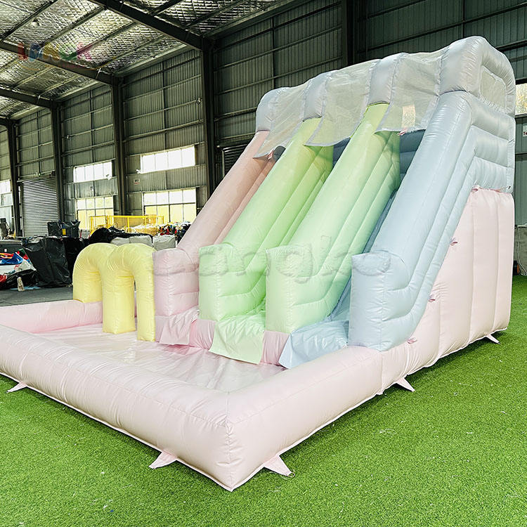 Toboggan aquatique gonflable en PVC pastel amusant pour intérieur et extérieur, parcours d'obstacles pour enfants, piscine à jets d'eau pour location d'événements et fêtes d'anniversaire