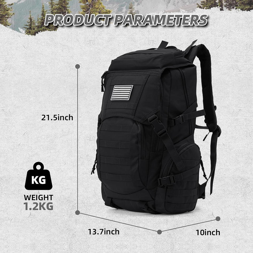 Sac à dos tactique fonctionnel avec logo personnalisé, impression, broderie, randonnée en plein air, camping, sac de voyage OEM ODM, fournisseur d'usine