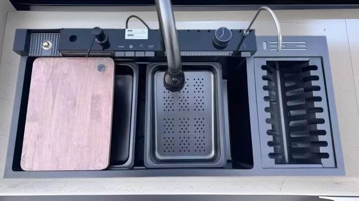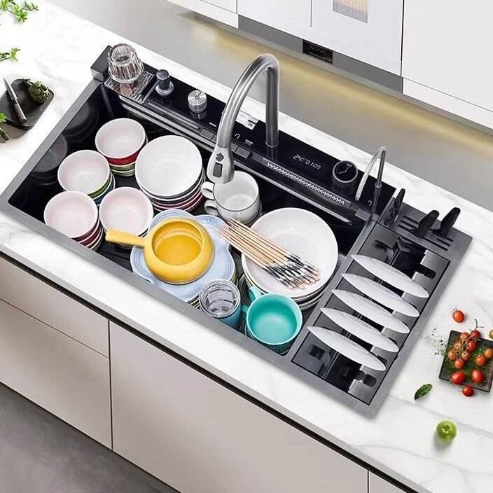 Évier de cuisine fonctionnel et polyvalent avec matériau anti-éclatement et cuve profonde pour usage domestique et hôtelier