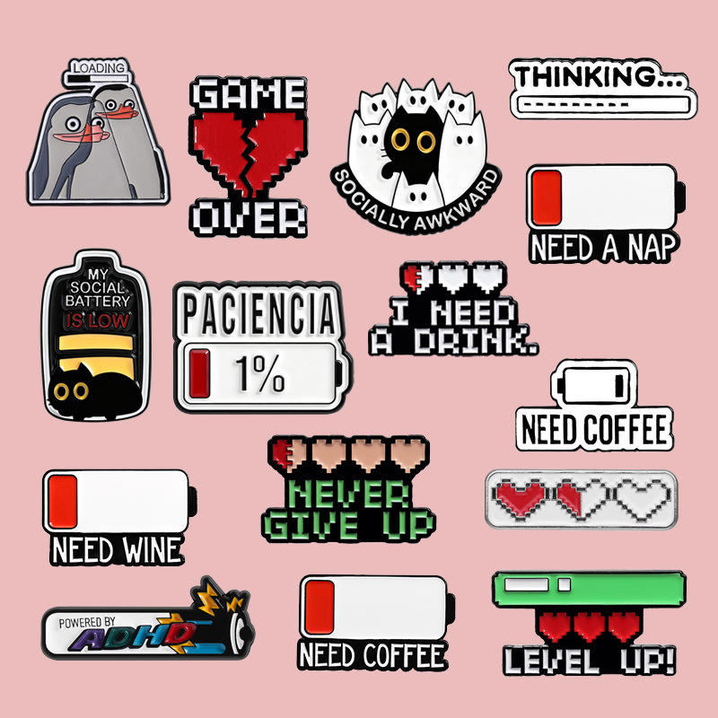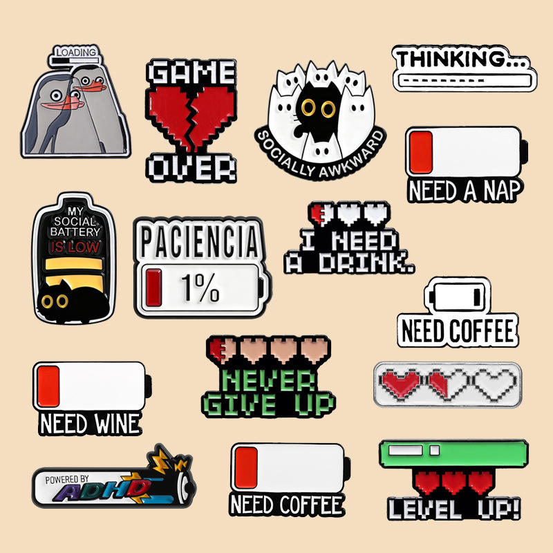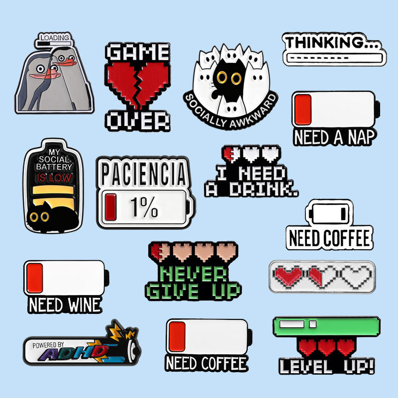 Badge amusant en alliage émaillé avec logo 'Batterie à recharger'