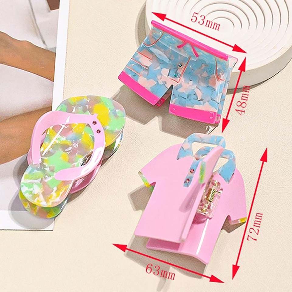 Drôle Boho Plage Vacances Coloré Vêtements Pantoufles Forme Acétate Cheveux Griffe Clips Pince Exquis Mode Cheveux Accessoires