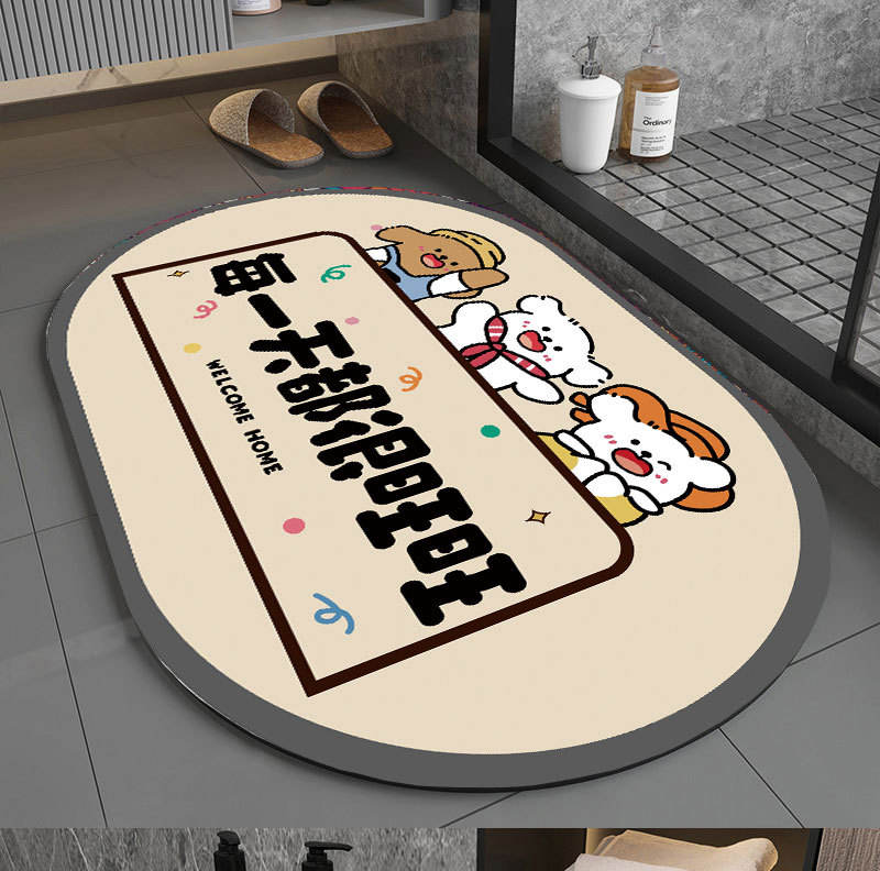 Tapis de Bain Absorbant et Antidérapant en Caoutchouc Ovale Imprimé Dessin Animé Drôle pour Salle de Bain, Toilette, Entrée, Porte, Tapis