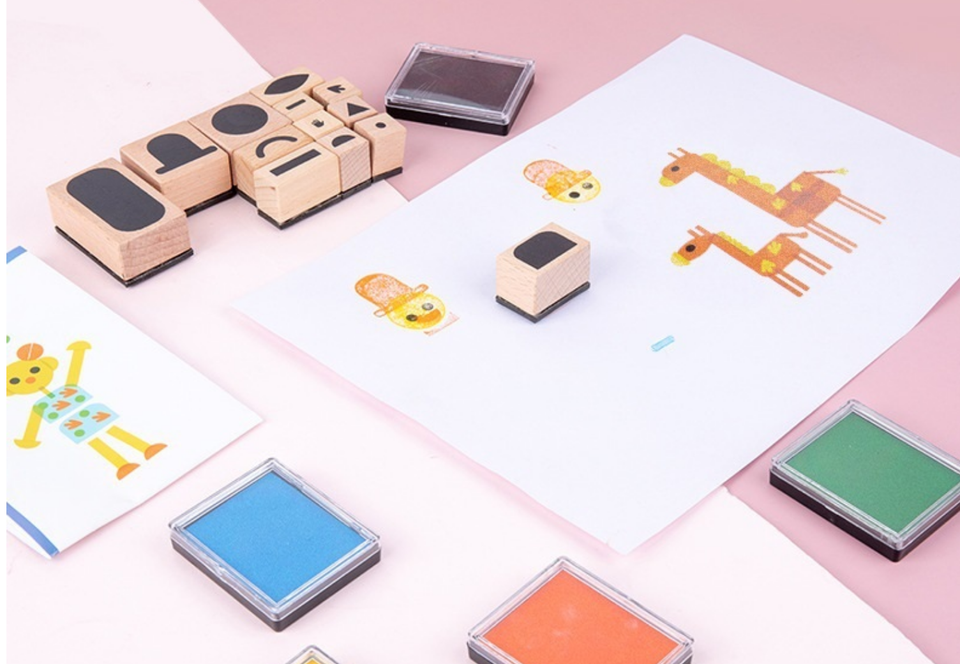 Drôle DIY Dessin Forme Jouet Éducatif Maternelle Montessori Coloré Timbres en Bois pour Enfants Cadeau