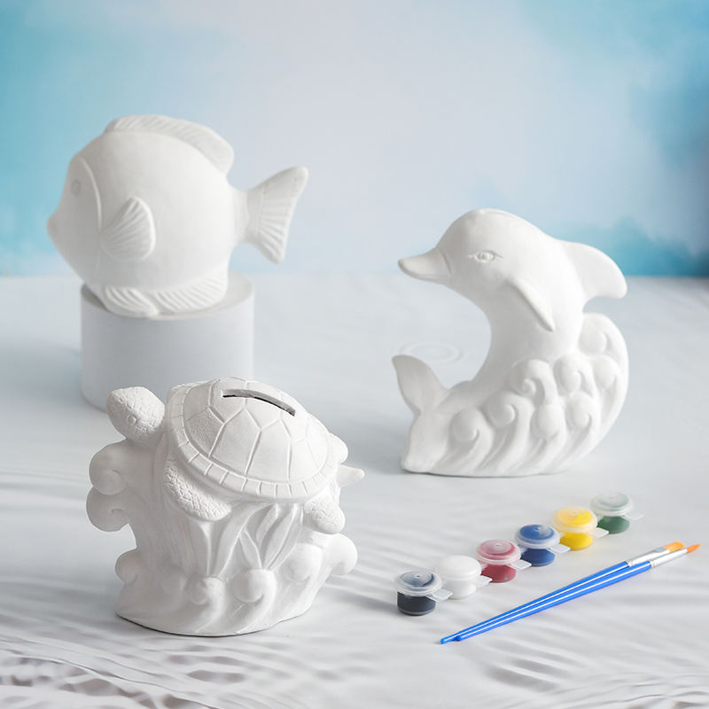 Nom du produit:Poupée figurine de dauphin peinte en céramique bricolage coloriage enfants jouets