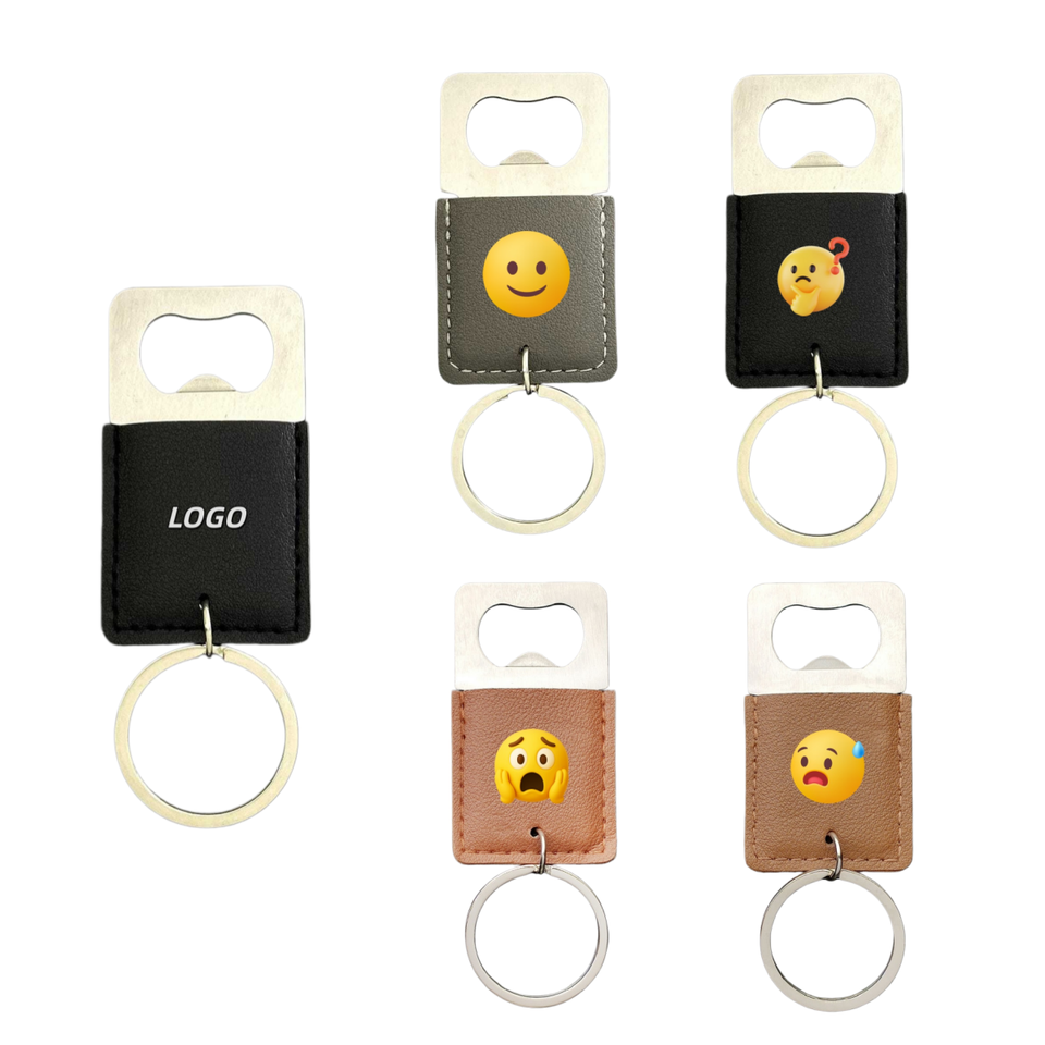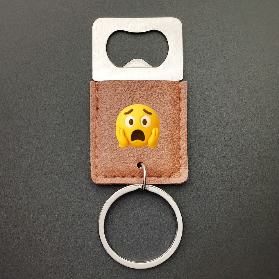 Ouvre-bouteille à motif d'expression amusante, ouvre-bouteille pour bière et cocktails, outil de bar, porte-clés créatif en cuir PU, logo personnalisé, cadeau souvenir