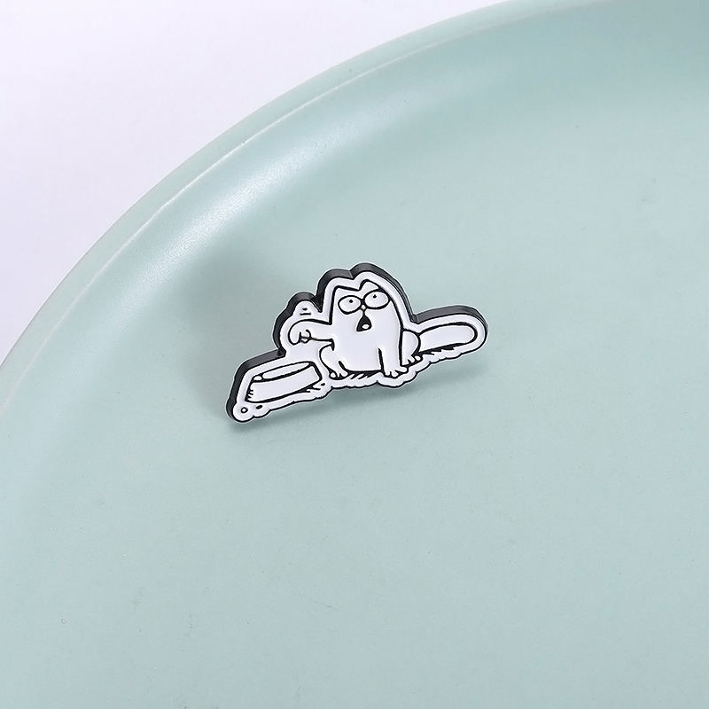 Funny Hungry Cat Feed ME Enamel Pin Simon Is Cat Cartoon Humorous Kitten Brooch Lapel Backpack Badge Jewelry Gift for Friends