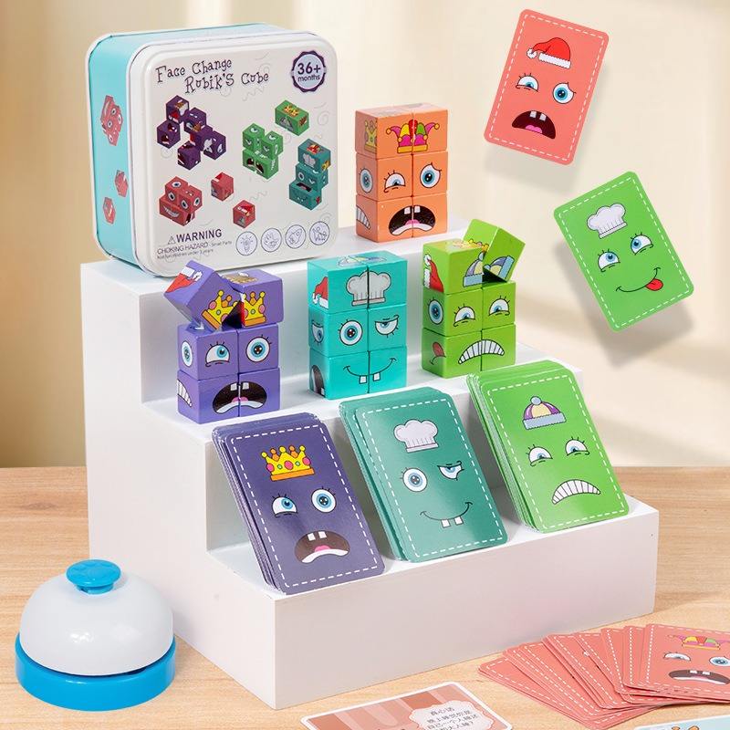 Jouet éducatif interactif amusant, jeu parent-enfant, puzzle tactile d'expression pour enfants avec boîte en métal, blocs de changement de visage