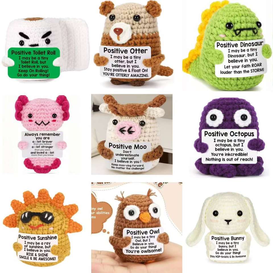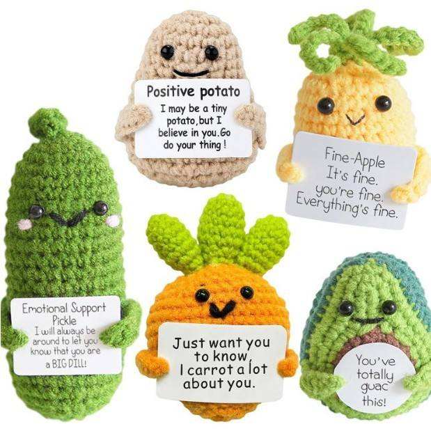 Mini-pommes de terre en crochet amusantes et positives, cadeaux d'entraînement émotionnel avec carte positive, poupées mignonnes tricotées pour amis