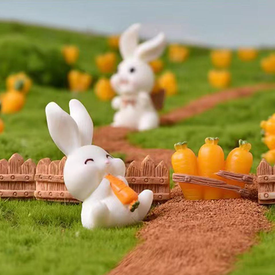 Décoration artisanale en résine de lapin et de carotte de dessin animé pour jardin miniature amusant, idéale pour maison de fée DIY