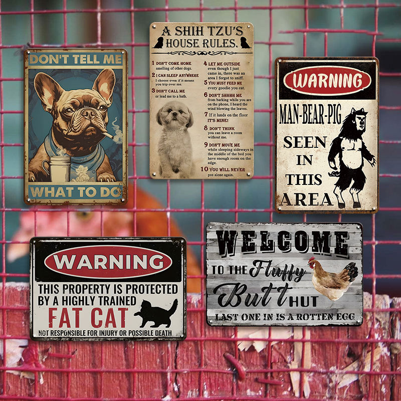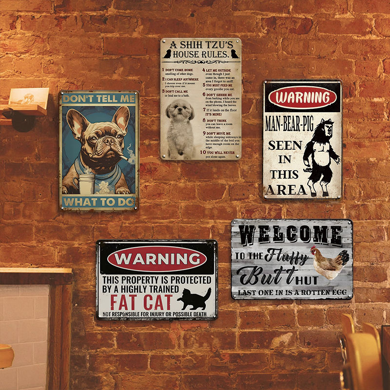 Plaque en métal humoristique avec règles pour animaux de compagnie, Shih Tzu, chat gras, avertissement, règles de la maison, plaque humoristique pour les amoureux des chiens et des chats