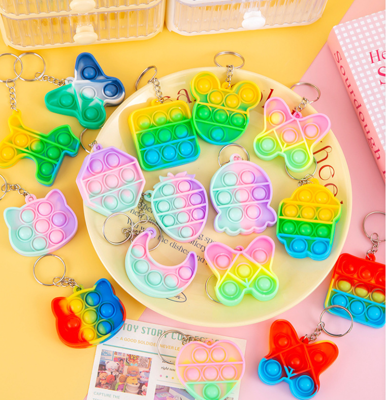 Porte-clés amusant en PVC arc-en-ciel en acier inoxydable avec design de dessin animé 3D Multifonctionnel Soulagement du stress pour enfants et adultes