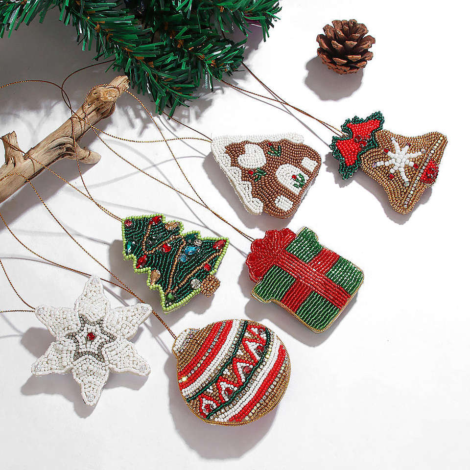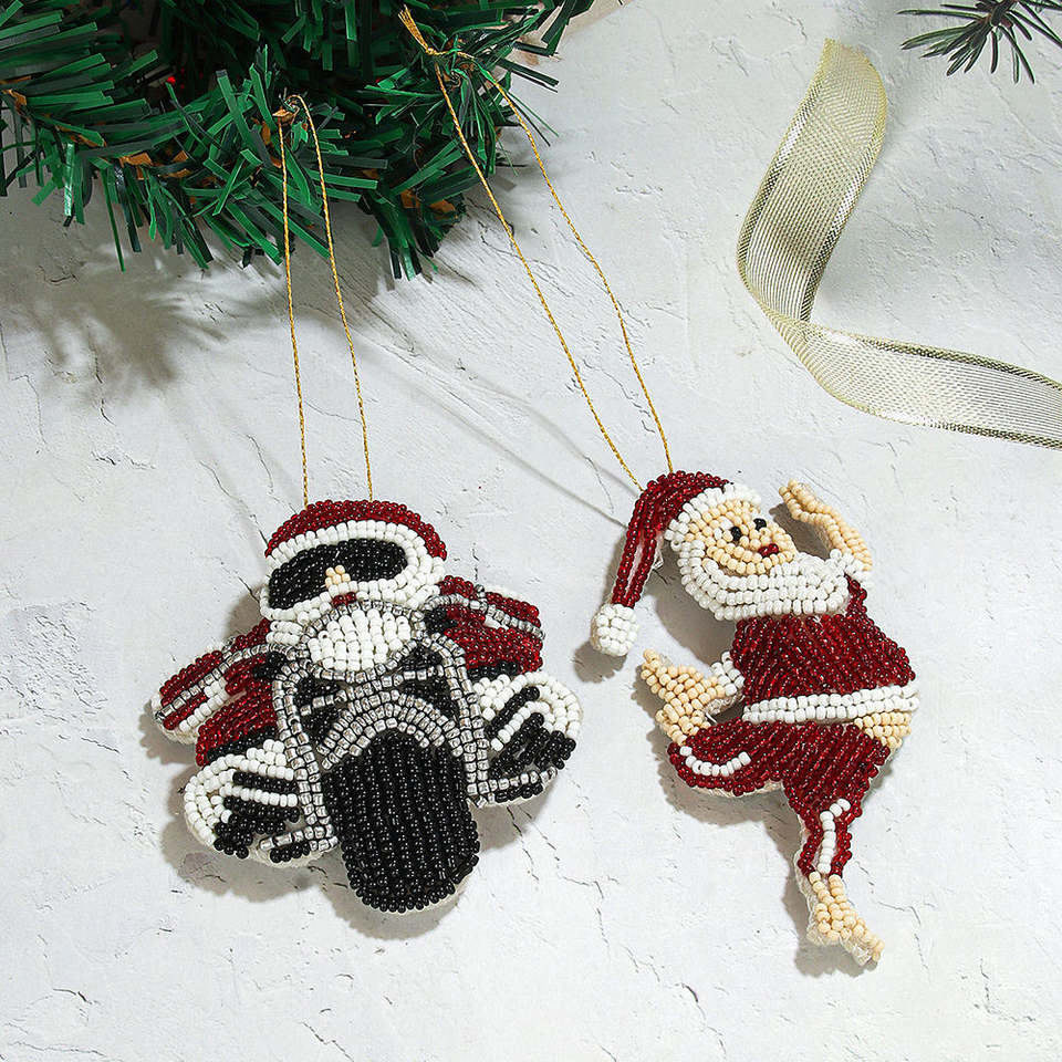 Funny Santa Claus Snowflake Christmas Ornaments Beaded Hanging Rice Bead Pendants for Tree Special Bag Parts Accessories