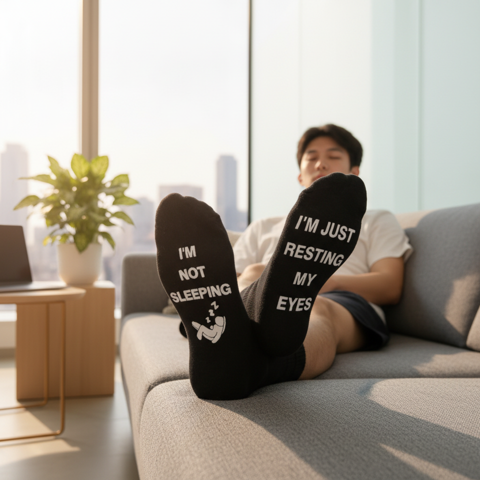OEM Birthday Gifts for Dad Fathers Day Gifts Funny Socks with Letters Not Sleeping I'm Just Rest My Eyes Fathers Day Socks Grip