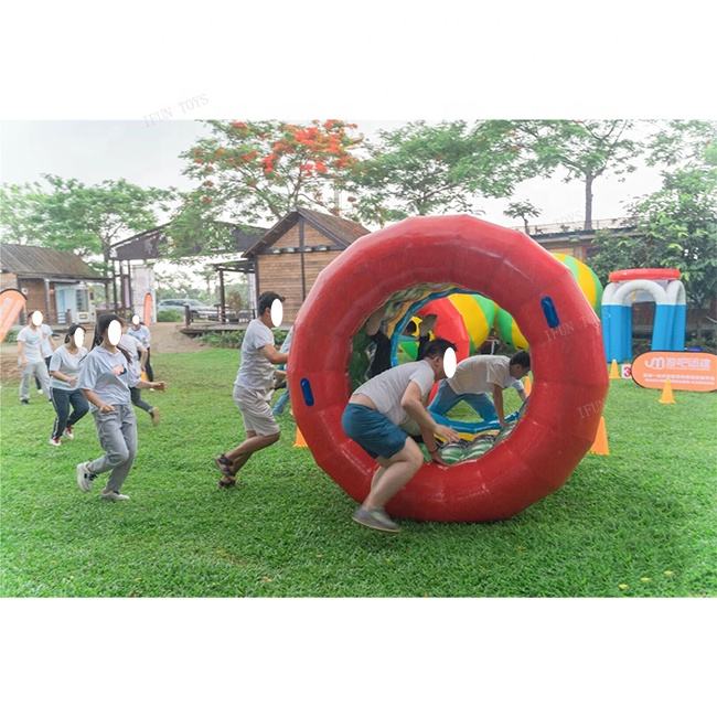 Jeux de construction d'équipe drôle roue de roulement de marche gonflable sur le sol roue de rouleau d'eau en verre jouets gonflables de roue de Hamster