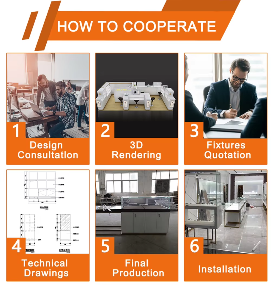 wall display tablehight counters and flass shelves