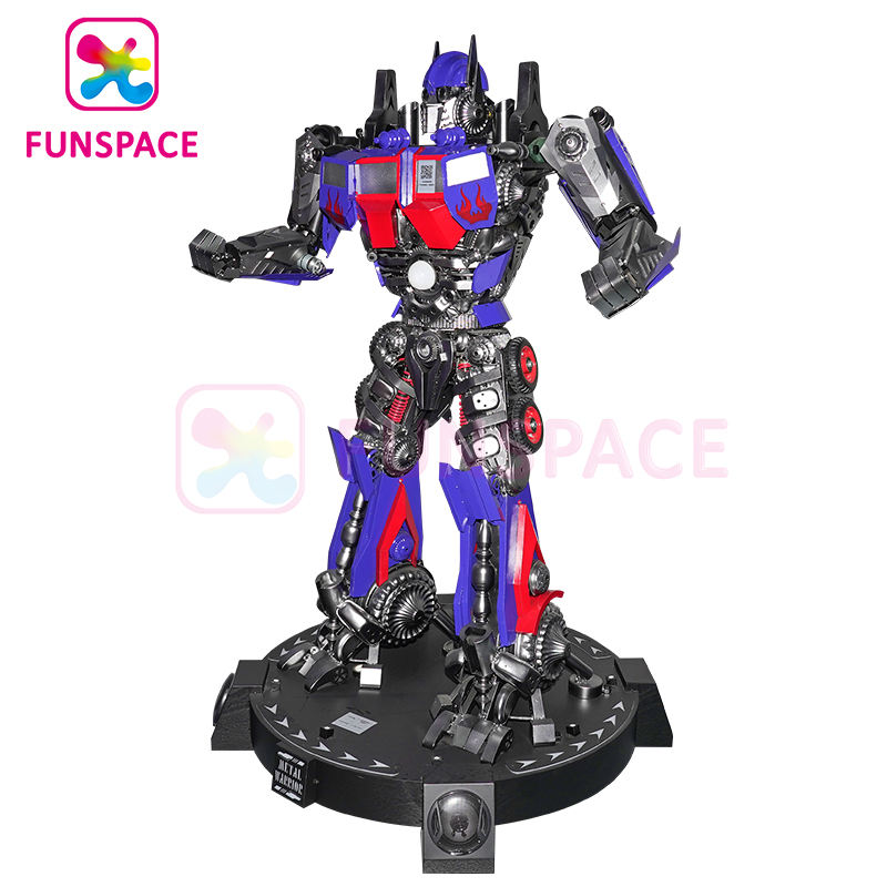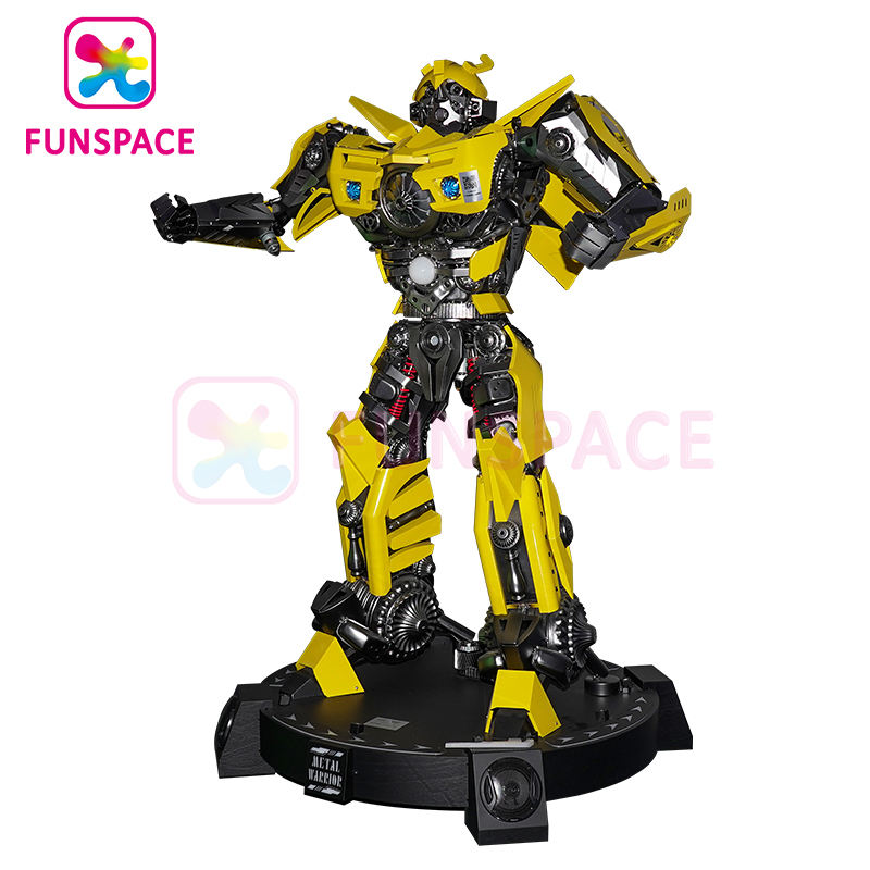 Robot transformable jaune et bleu de 2,1 mètres, grand robot d'accueil pour centre de jeux, parc d'attractions Funspace