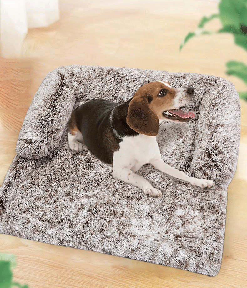 Lit pour chien en fourrure de renard, peluche d'hiver, solide, apaisant, avec housse amovible et lavable, canapé-lit imperméable de luxe pour animaux de compagnie
