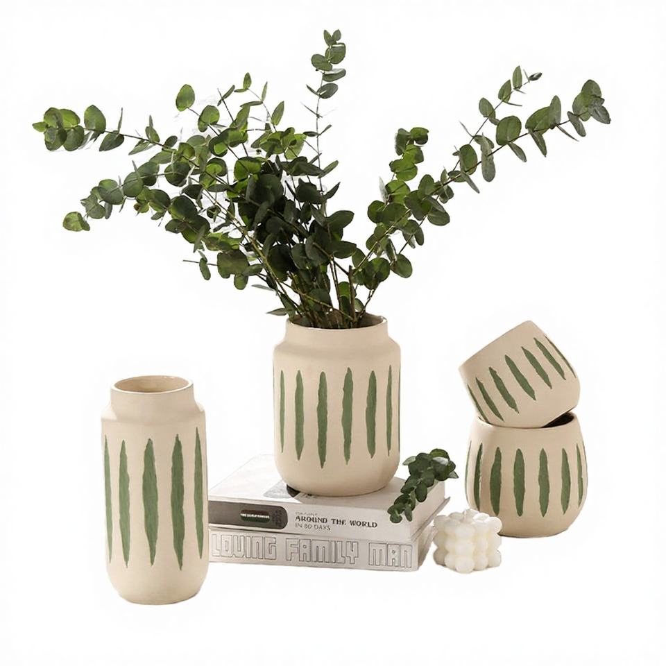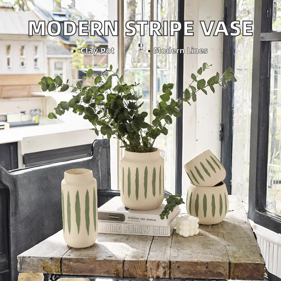 Furbish Home Decor – Pots de fleurs cylindriques en terre cuite au design européen avec éléments rayés pour hortensias – Vases en céramique et porcelaine